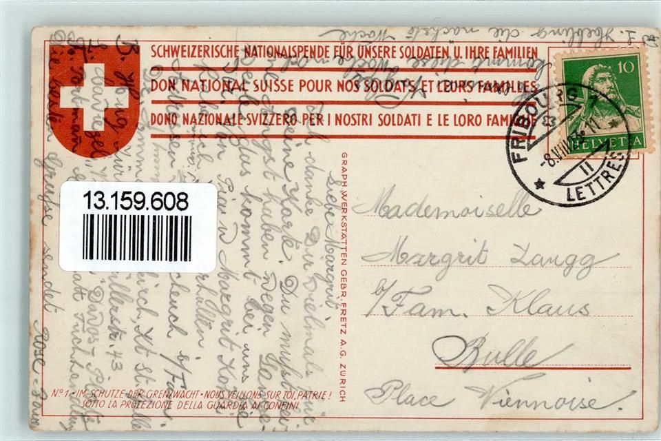 Nr. 1 Im Schutze der Grenzwacht Nationalspende für unsere Soldasten u. Familien AK Militär Schweiz 1923