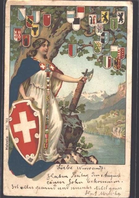 Nr. 364 AK mit Stoff Prägedruck Wappen AK Helvetia Gebrauchsspuren