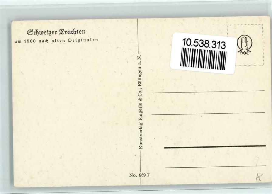 Nr. 869 T Serie Verlag Fingerle - Bauer - Trachten um 1800 , gute Erhaltung Tracht Schweiz