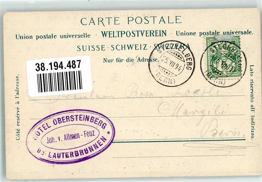 Obersteinberg 1904 Foto AK Hotel Breithorn Tschinelhorn