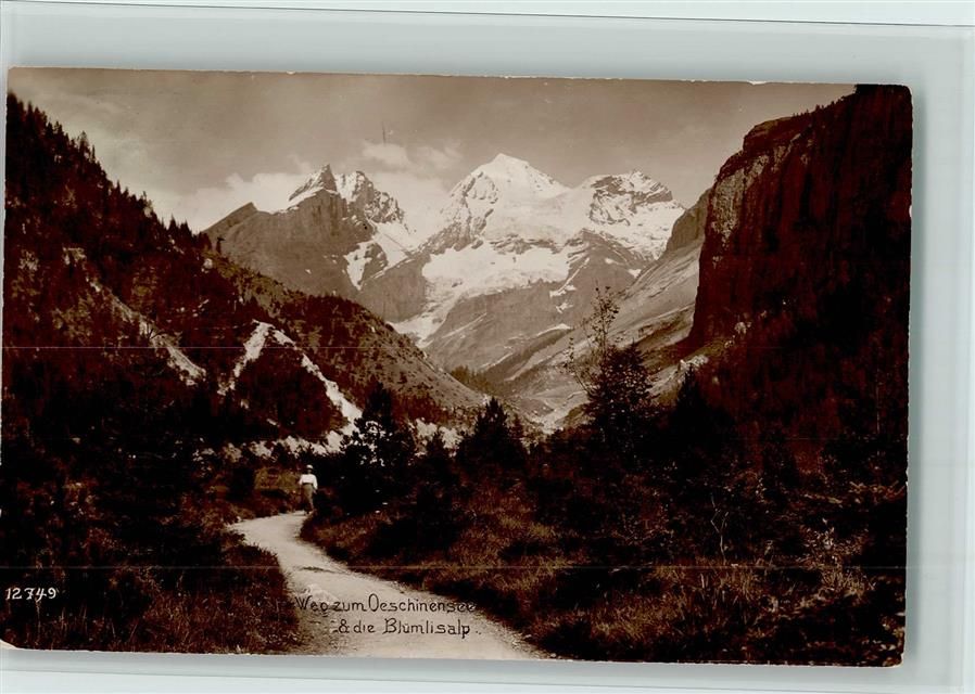 Oeschinensee, Weg zum Oeschinensee und die Blümlisalp Wanderer