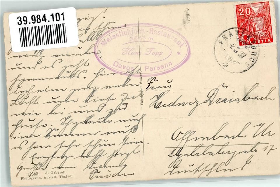 Parsenn 1937 Winter Weissflugipfel