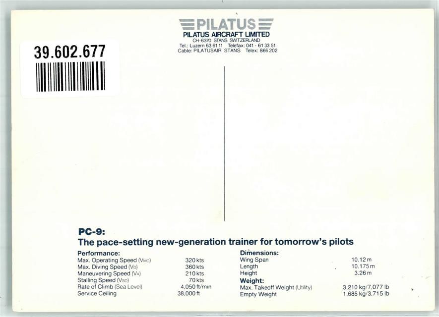 Pilatus PC-9 zweisitziges Schulflugzeug m. Turboprop-Antrieb