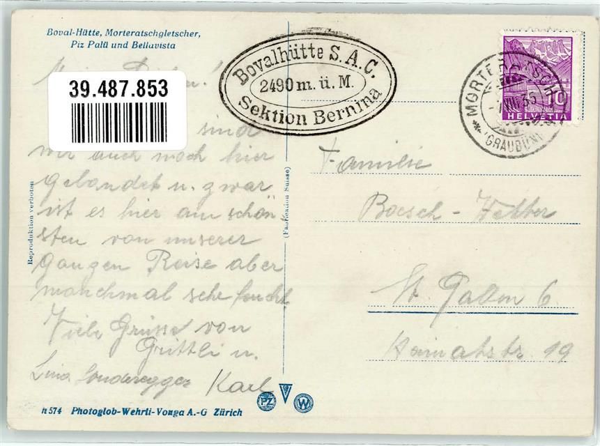 Piz Bernina, Boval-Hütte Morteratsch Gletscher