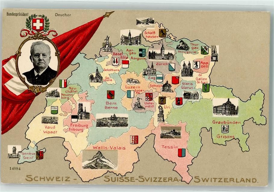 , Bundespräsident Deucher Kantonwappen Verlag Guggenheim Nr. 14639
