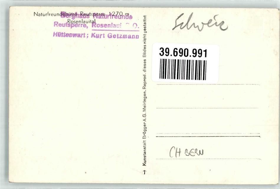 Reutsperre, Naturfreundehütte Rosenlauital Hüttenstempel
