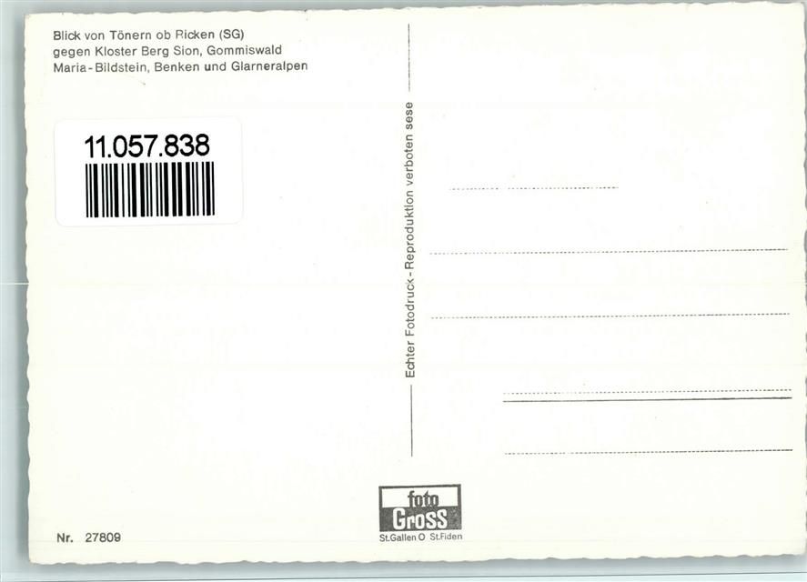 Ricken Gommiswald - Blick von Tönern ob Ricken gegen Klosterberg Sion Gommiswald Maria-Bildstein Benken und Glarneralpen