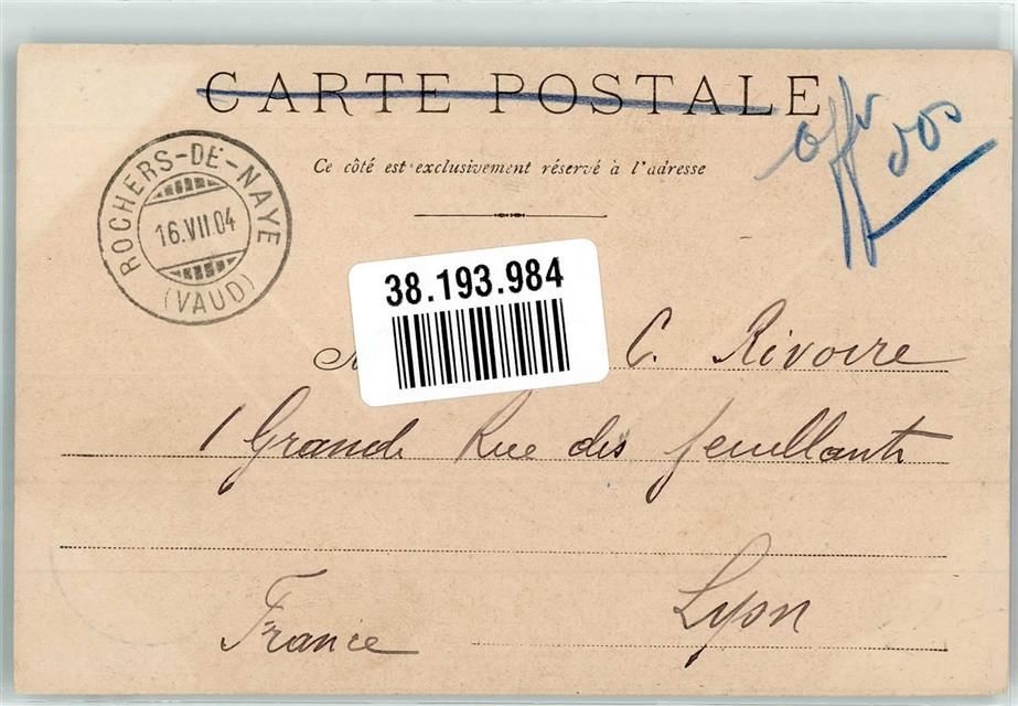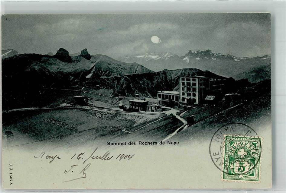 Rochers de Naye 1904 Mondschein Bahnhof Hotel Breifmarke Bildseite