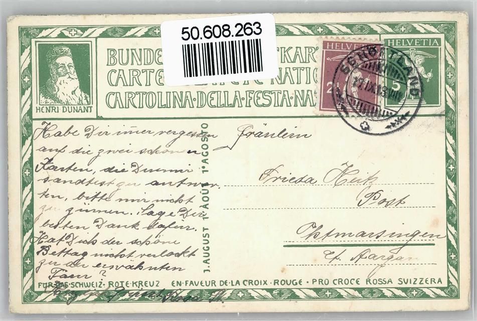 rotes Kreuz Bundesfeier Ganzsachen Schweiz Künstlerkarte