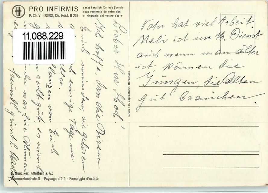 S. Hunziker Affoltern a.A. Sommerlandschaft Pro Infirmis Schweiz Künstlerkarte