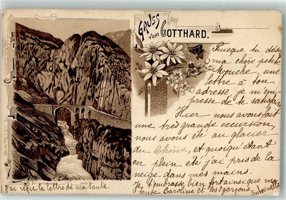 Sankt Gotthard TI 1897 Gebrauchsspuren Lithographie Verlag Künzli Nr 1081
