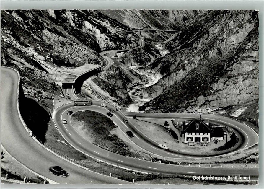 Schöllenen 1963 Foto AK Omnibus Auto Hotel Gotthardstrasse