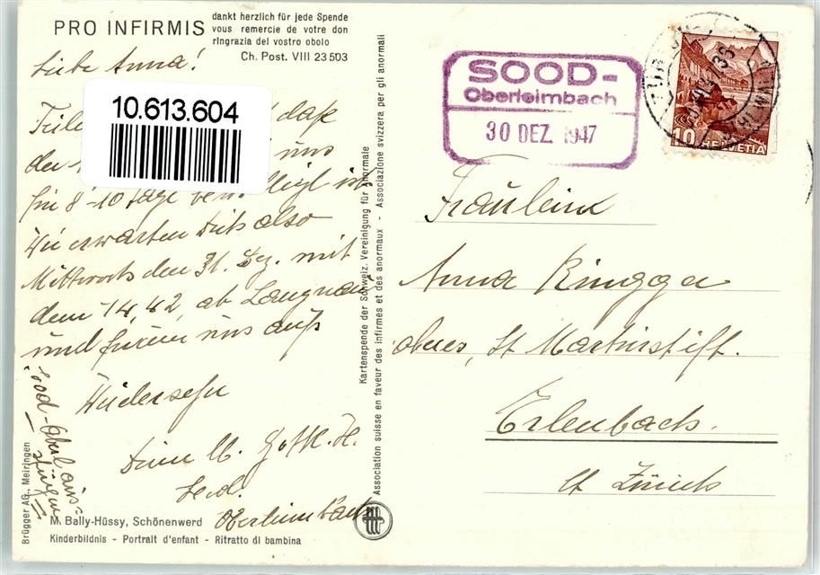 Schönenwerd SO Kinderbildnis M Bally Hüssy Pro Infirmis Schweiz Gebrauchsspuren
