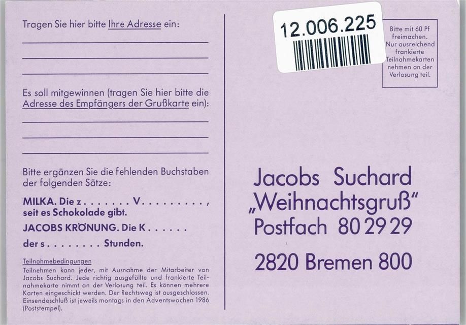 Schokolade - Weihnachten - Künstler sign Blume - Klappkarte, 2-teilig Suchard Schokolade