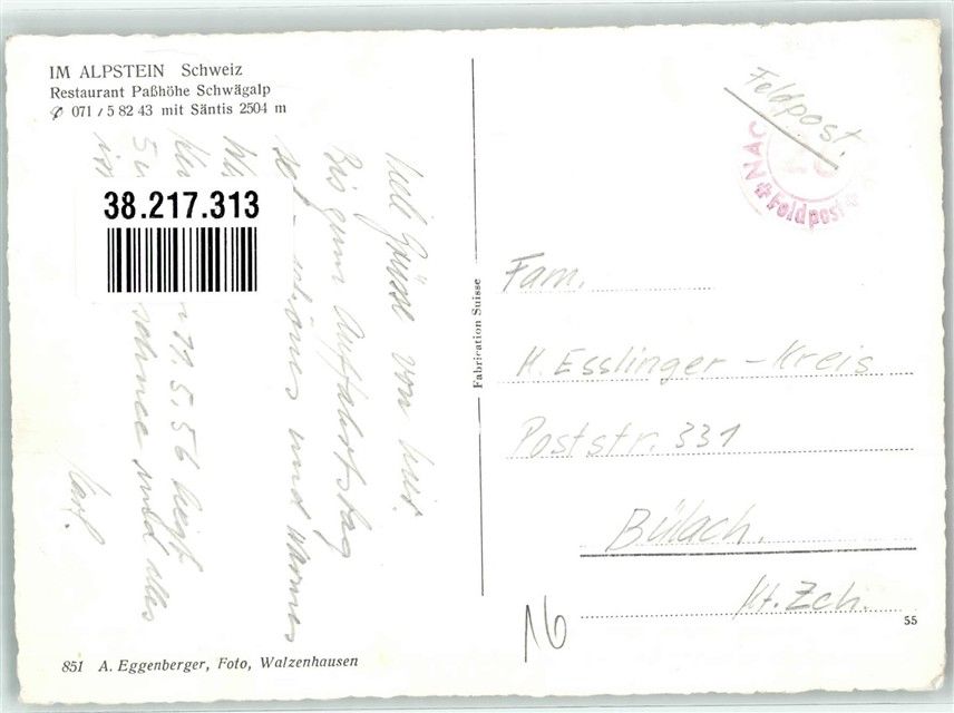 Schwägalp, Omnibus Auto Gasthaus Schwägalp Feldpost