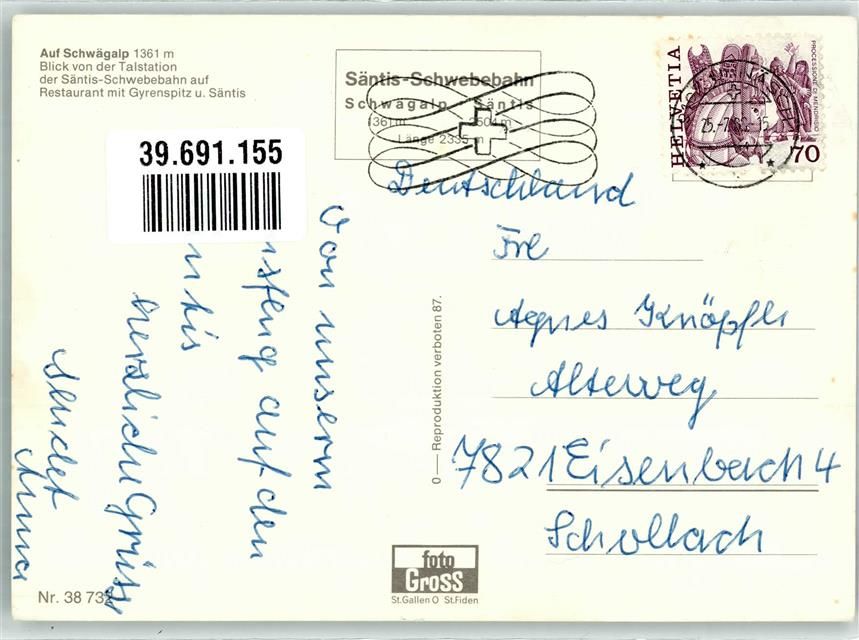 Schwägalp Foto AK Seilbahn Säntis Foto Gross