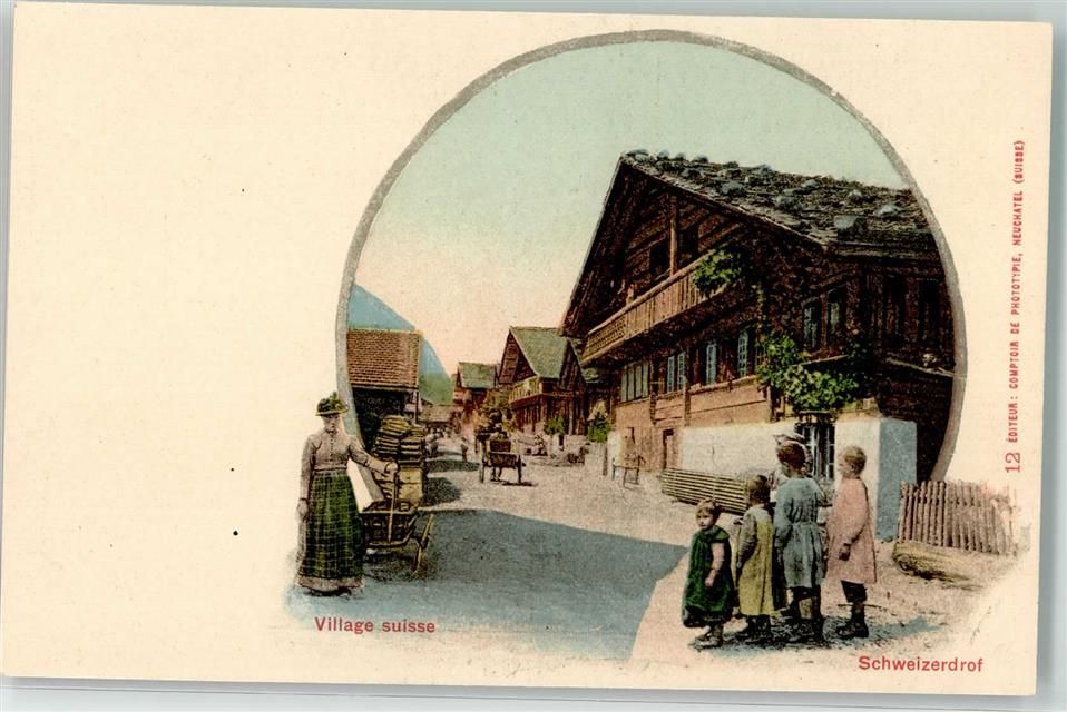 Schweizerdorf Pferdekutsche Leiterwagen Motiv Schweiz