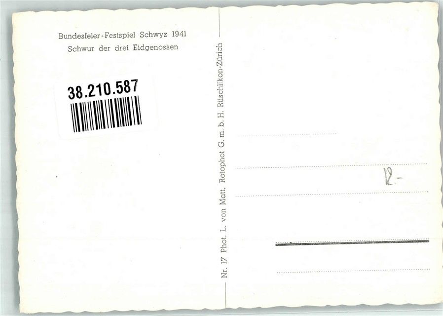 Schwyz Bundesfeier Festspiel Schwur der drei Eidgenossen 1941 Bundesfeier / Pro Patria Schweiz Foto AK