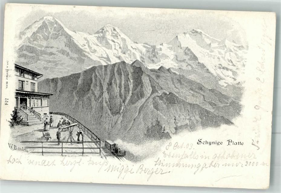 Schynige Platte 1903 Lithographie / Künstlerkarte Hotel Bergbahn sign. Benteli, W.