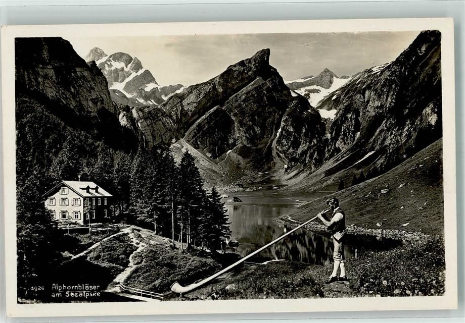 Seealpsee Foto AK Alphornbläser Foto Gross