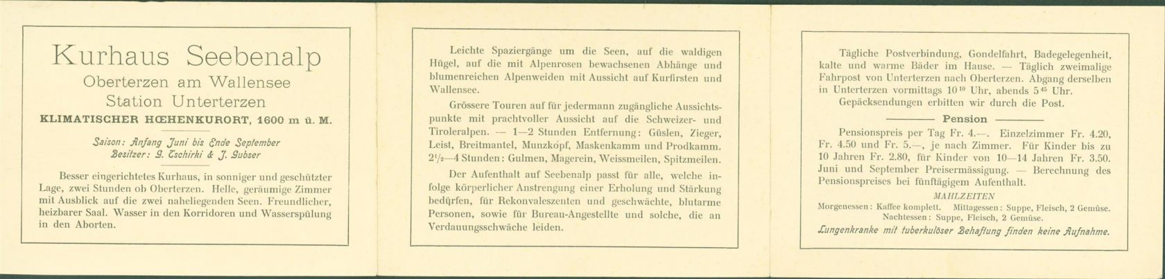 Seebenalp, Kurhaus Informationskarte 2-fach Klappkarte