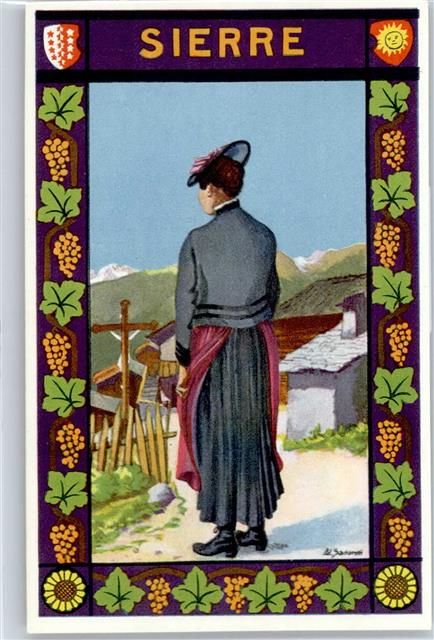 Sierre , Trauben verziert Tracht Schweiz Künstlerkarte