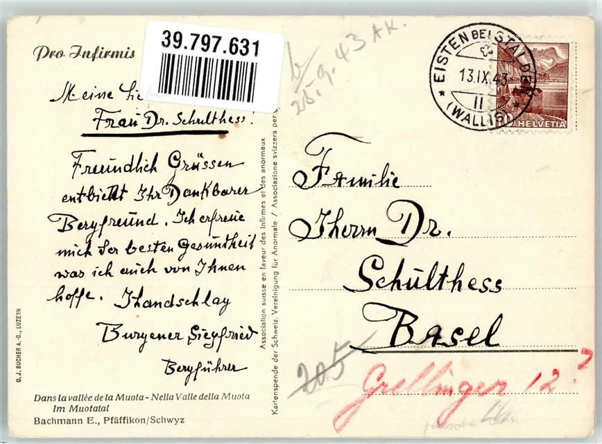 sign. Bachmann E. Almhütte Ziege Pro Infirmis Schweiz 1943 Künstlerkarte