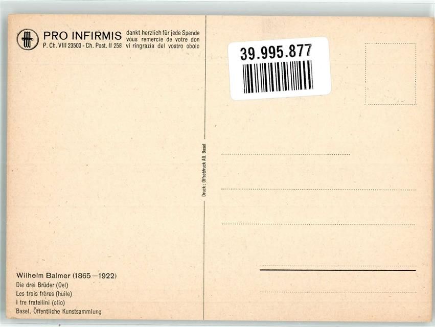 sign. Balmer Wilhelm Die drei Brüder Pro Infirmis Schweiz Künstlerkarte