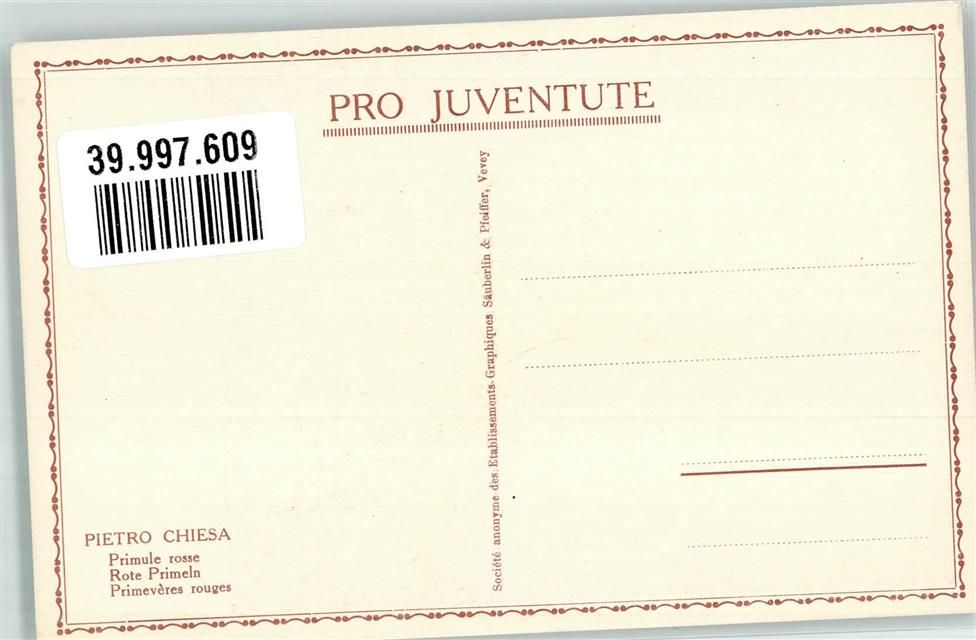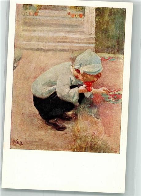 sign. Chiesa Pietro Rote Primel Kind Pro Juventute Schweiz Künstlerkarte