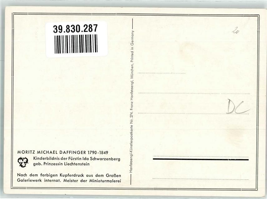 sign. Dalfinger, M.M. Kinderbildnis der Fürstin Ida Schwarzenberg Adel Liechtenstein Künstlerkarte