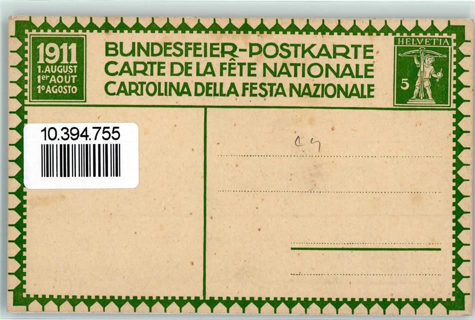 sign. Dunk 1911 Schlacht Bundesfeier Ganzsachen Schweiz