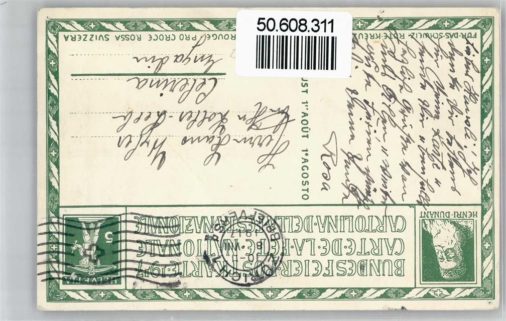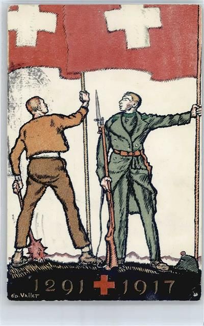 sign. Ed. Vallet , rotes Kreuz Bundesfeier Ganzsachen Schweiz