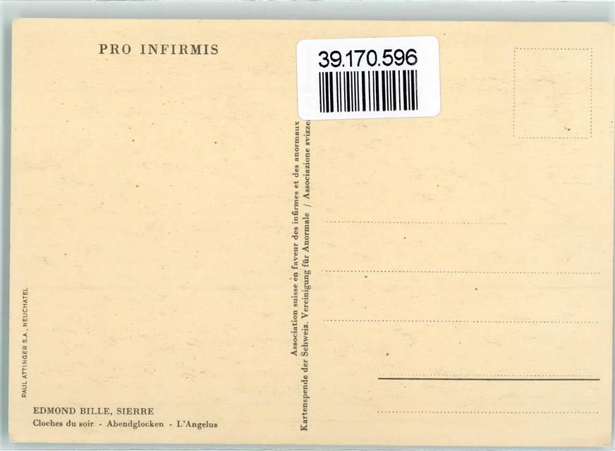 sign. Edmond Bille Sierre Wegkreuz Abendglocken AK Pro Infirmis Schweiz Künstlerkarte