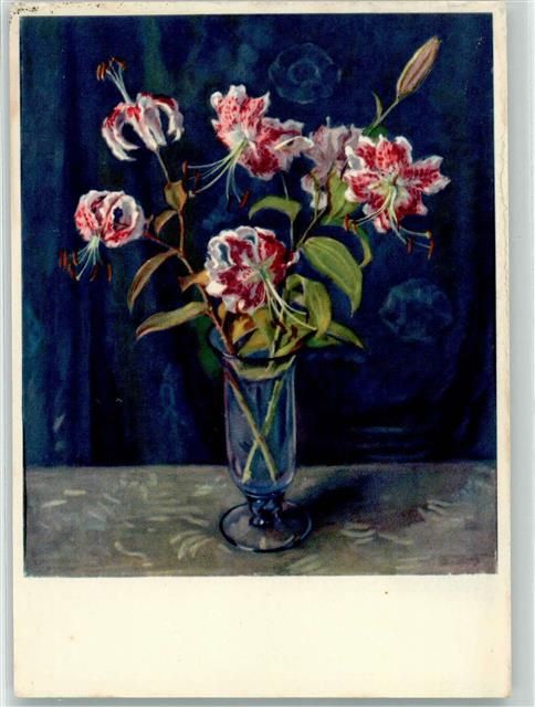 , sign. Elly Bernet-Studer Blumenvase Lilien AK
