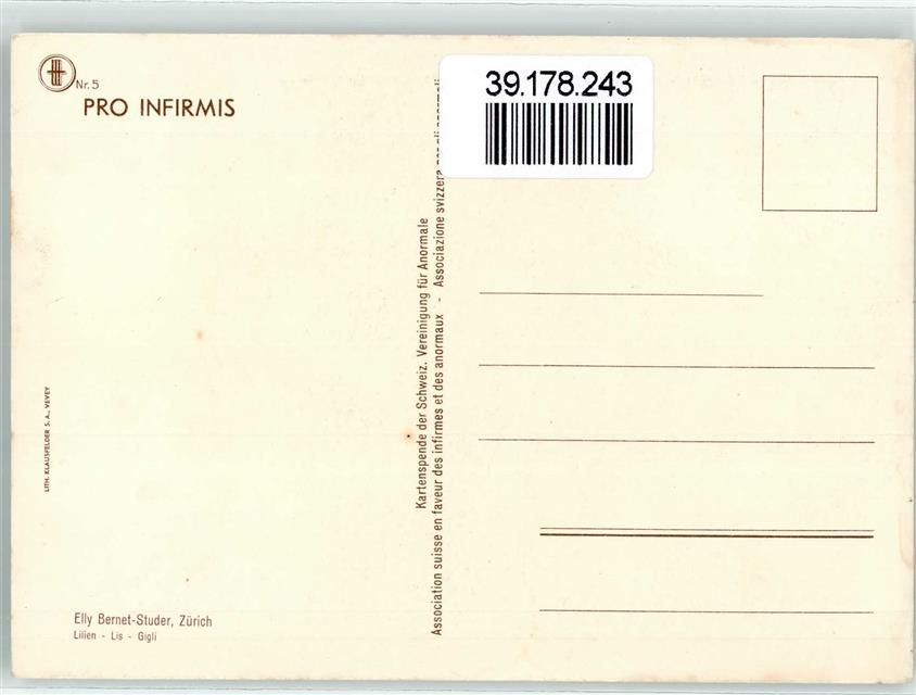 sign. Elly Bernet-Studer Blumenvase Lilien AK Pro Infirmis Schweiz