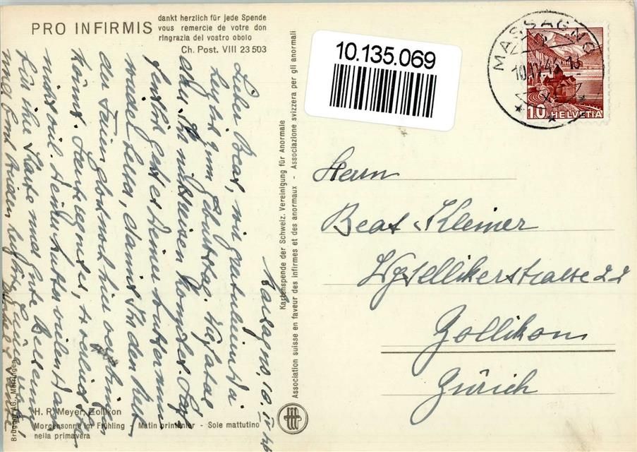 sign H.R. Meyer . Morgensonne im Frühling, gute Erhaltung AK Pro Infirmis Schweiz 1943 Künstlerkarte