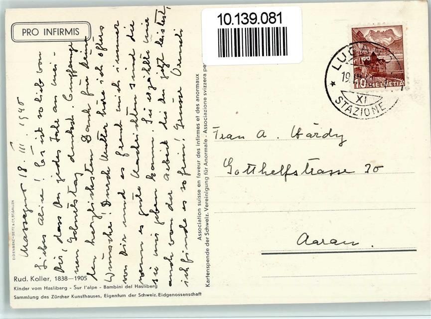 sign Koller - Kinder vom Hasliberg - Spendenkarte Pro Infirmis Schweiz 1940 AK mit Glitzer