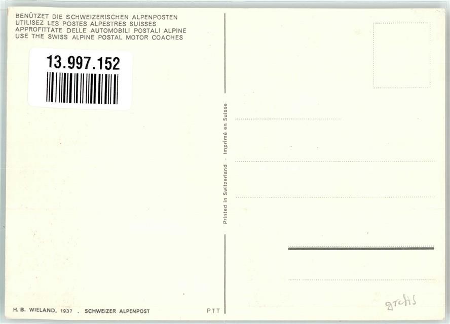 sign. Wieland, H.B. Alpenpost Postkutsche Schweiz 1937 Künstlerkarte