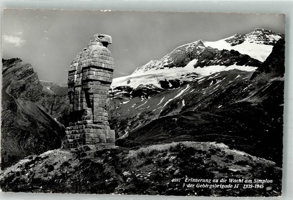 Simplon Berg Foto AK Denkmal Erinnerung an die Wacht am Simplon 1939-1945