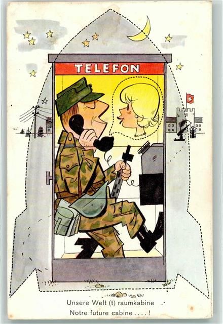 Soldat in der Telefonkabine am tel mit seiner Liebsten Feldpost Mil Kurse u Schulen Militär Schweiz