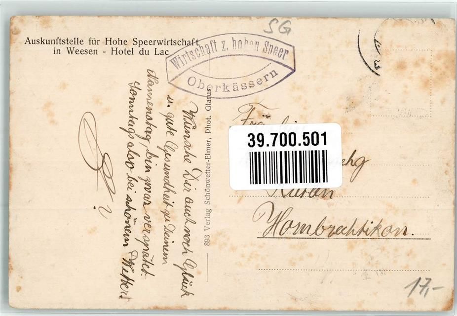 Speer Walensee, Gasthaus Hohen Speer Oberkäsernalp Hüttenstempel