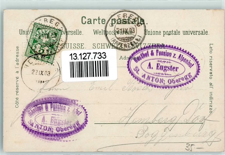 St. Anton Pass 1903 - Pension Alpenhof St. Antons-Kapelle Panorama gegen den Bodensee