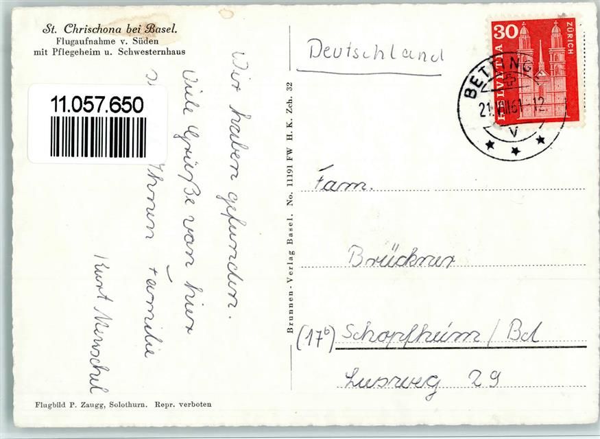 St Chrischona - bei Basel mit Pflegeheim und Schwesternhaus Flugaufnahme von Süden