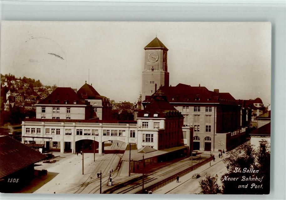 St. Gallen S. Gallo Neuer Bahnhof und Post Bahnhof Schweiz 1916