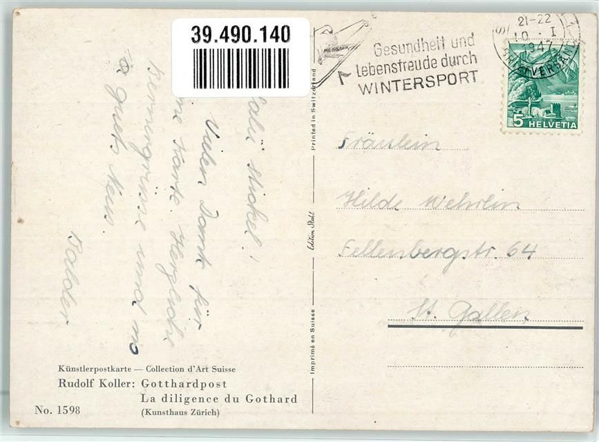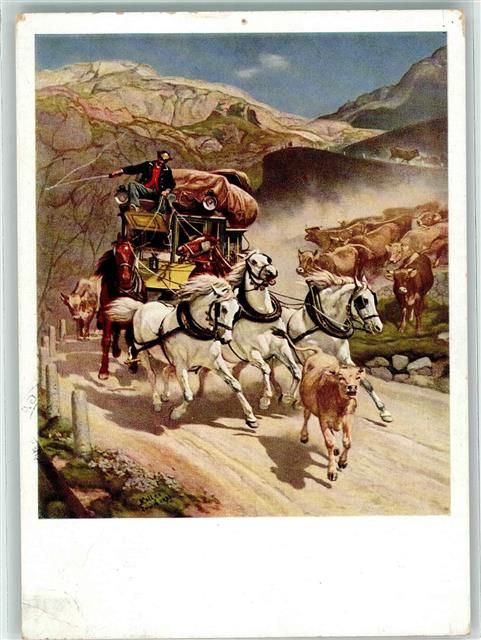 St Gotthard Postkutsche Gotthardpost Künstler R. Koller Kuh Postkutsche Schweiz