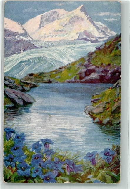 Strahlhorn Aletschgletscher Künstlerkarte sign. Kutscha