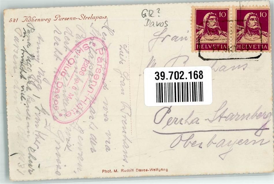 Strela, Höhenweg nach Parsenn Hüttenstempel