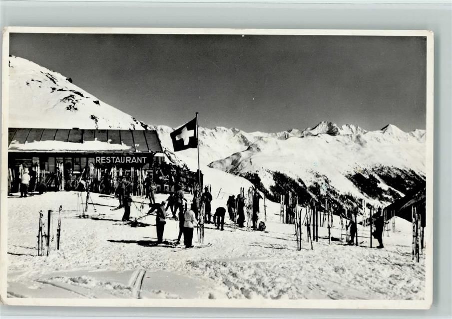 Strelapass, Berghaus Strelapass schweizer Flagge Skifahrer Winter