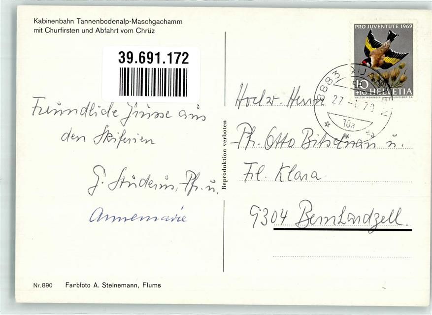 Tannenbodenalp Foto AK Foto Steinemann Kabinenbahn Maschgachamm Churfirsten Winter