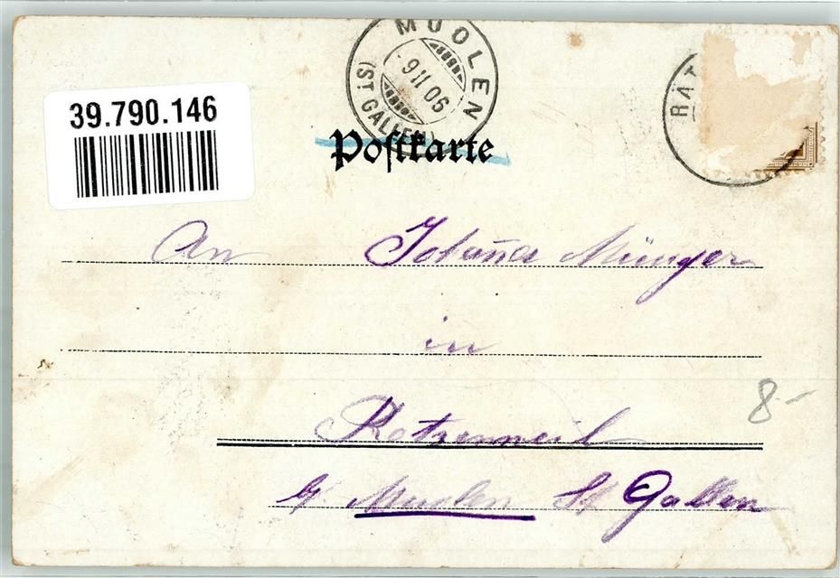Tellkarte Nr. 3 Die Landung Tell`s Motiv Schweiz 1905 Lithographie